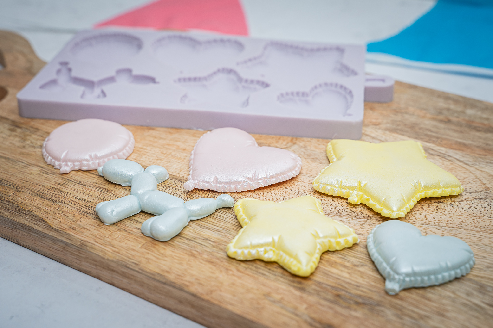 Our moulds can be used with Sugarpaste, Rolled Buttercream, Flower paste, Marzipan, Modelling paste, Chocolate, Candy, Boiled Sugar, Saltdough, Air Drying Clays, Cold Porcelain and Embossing Powder.