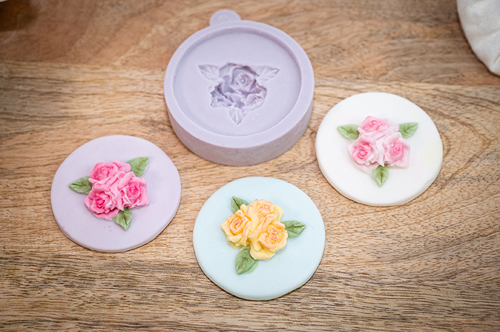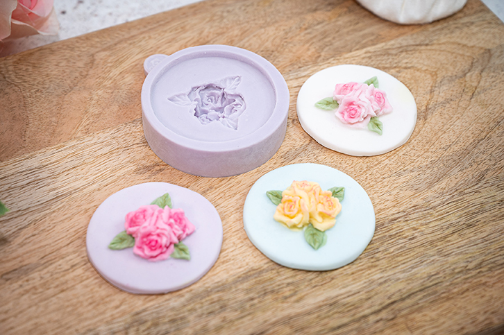 Our moulds can be used with Sugarpaste, Rolled Buttercream, Flower paste, Marzipan, Modelling paste, Chocolate, Candy, Boiled Sugar, Saltdough, Air Drying Clays, Cold Porcelain and Embossing Powder.