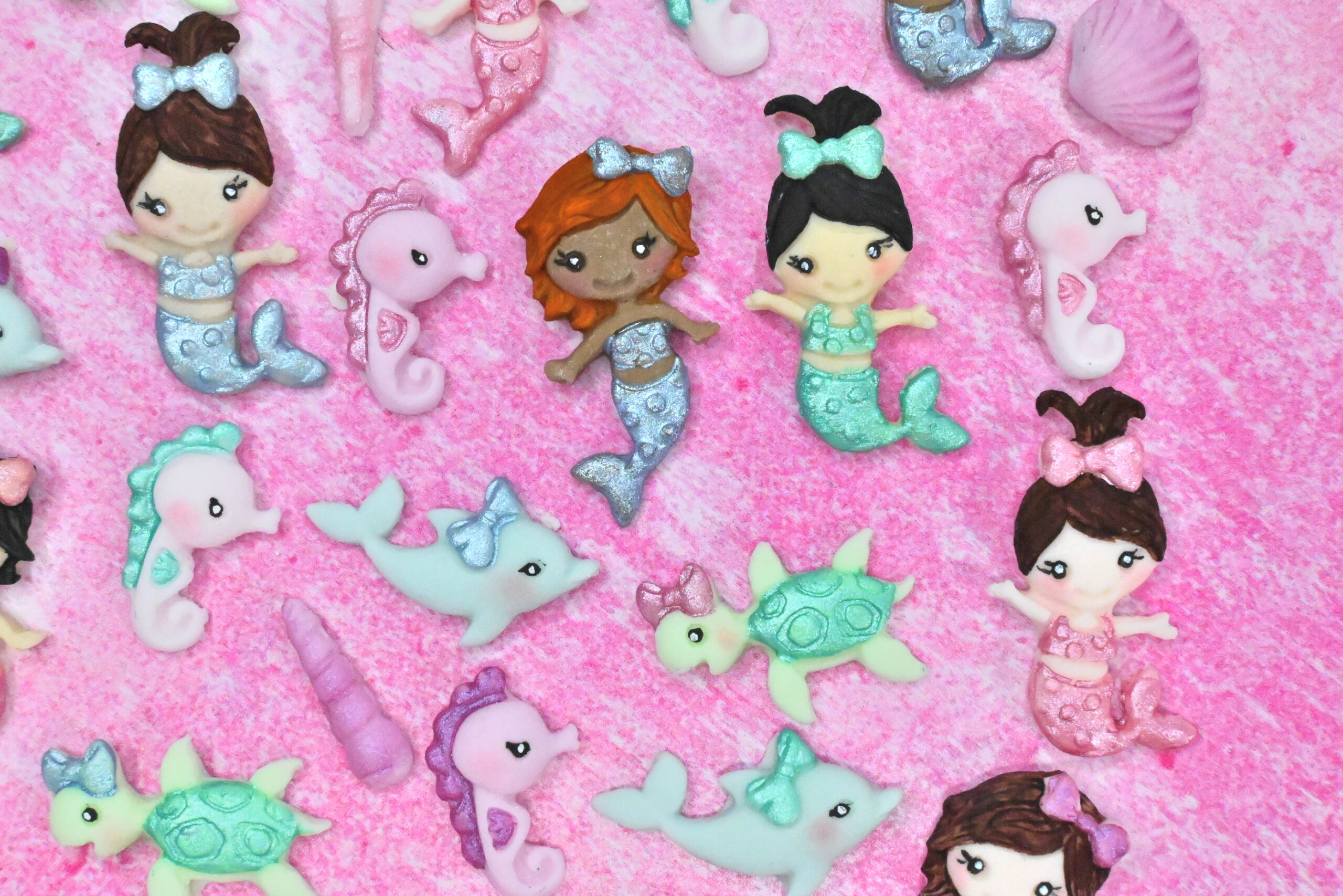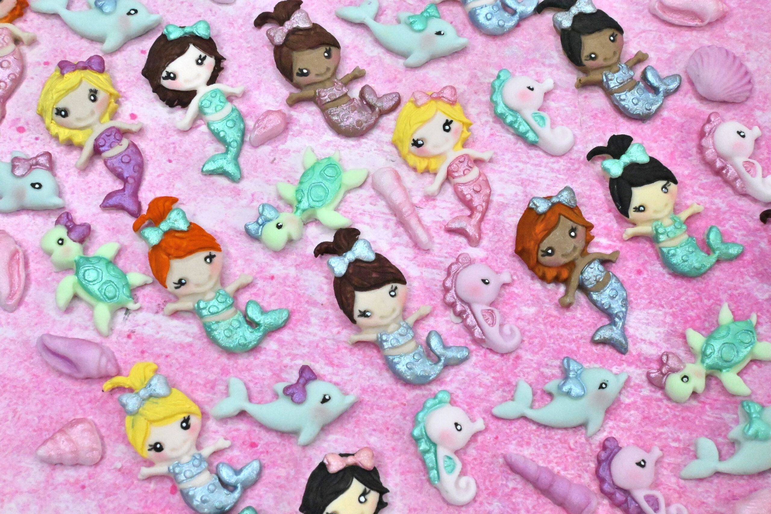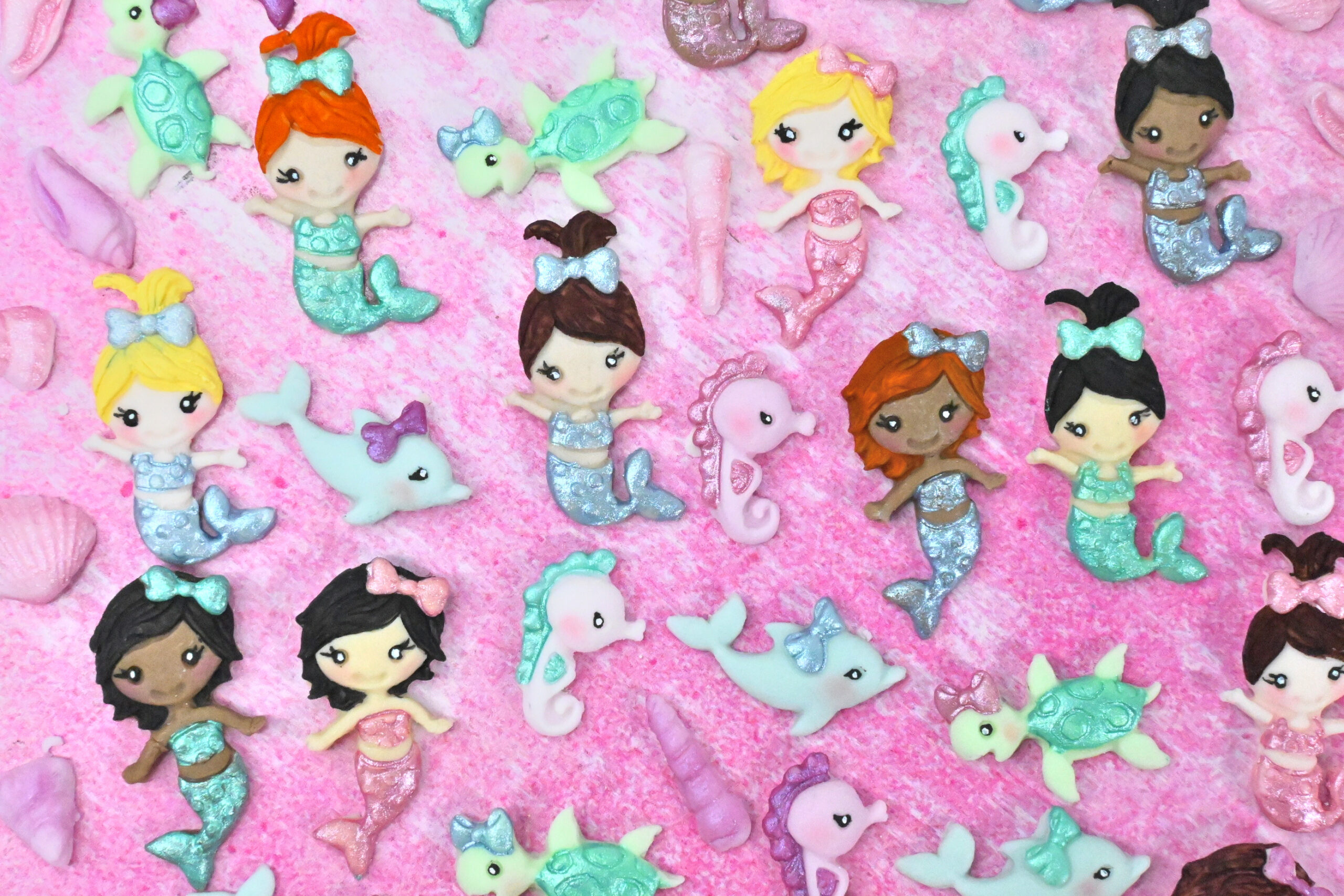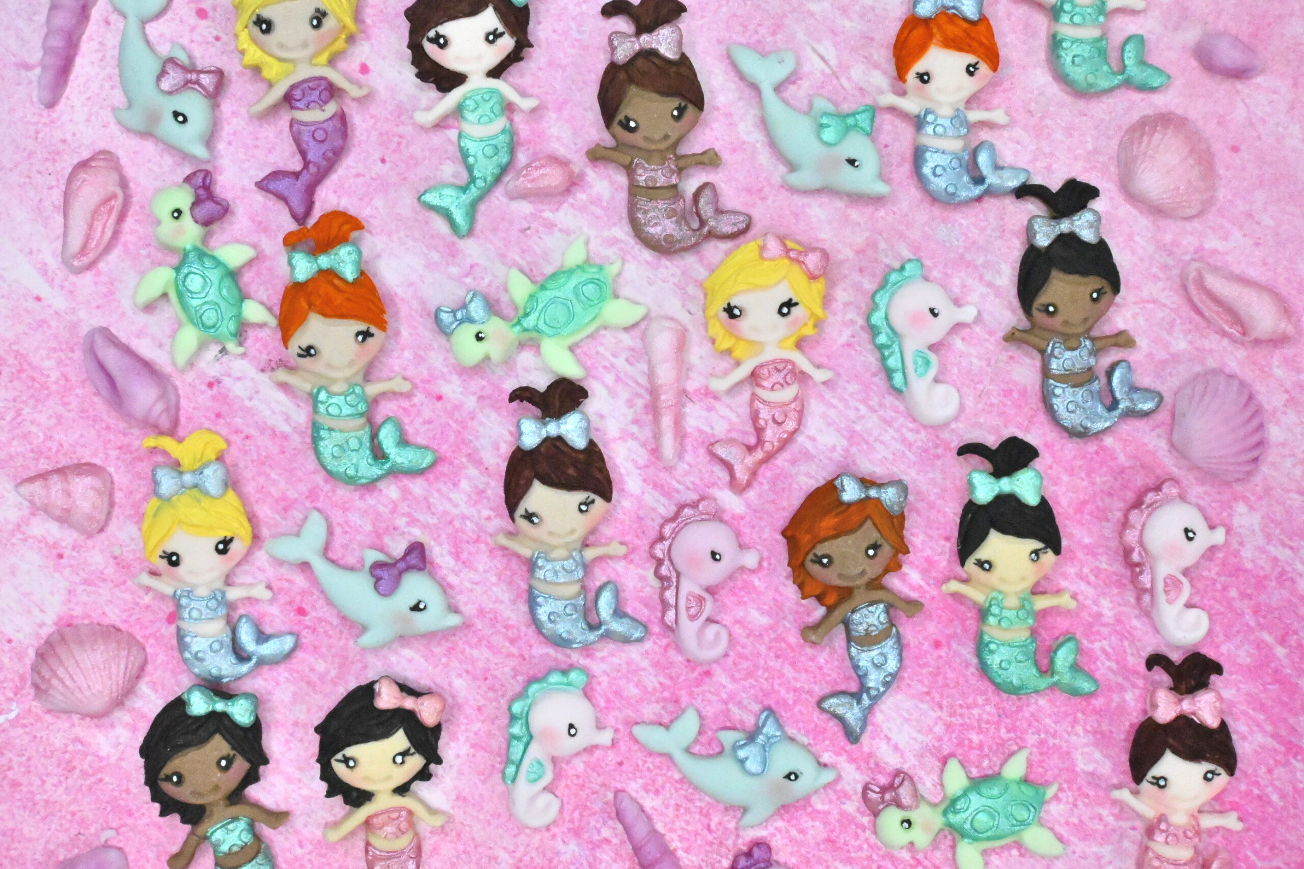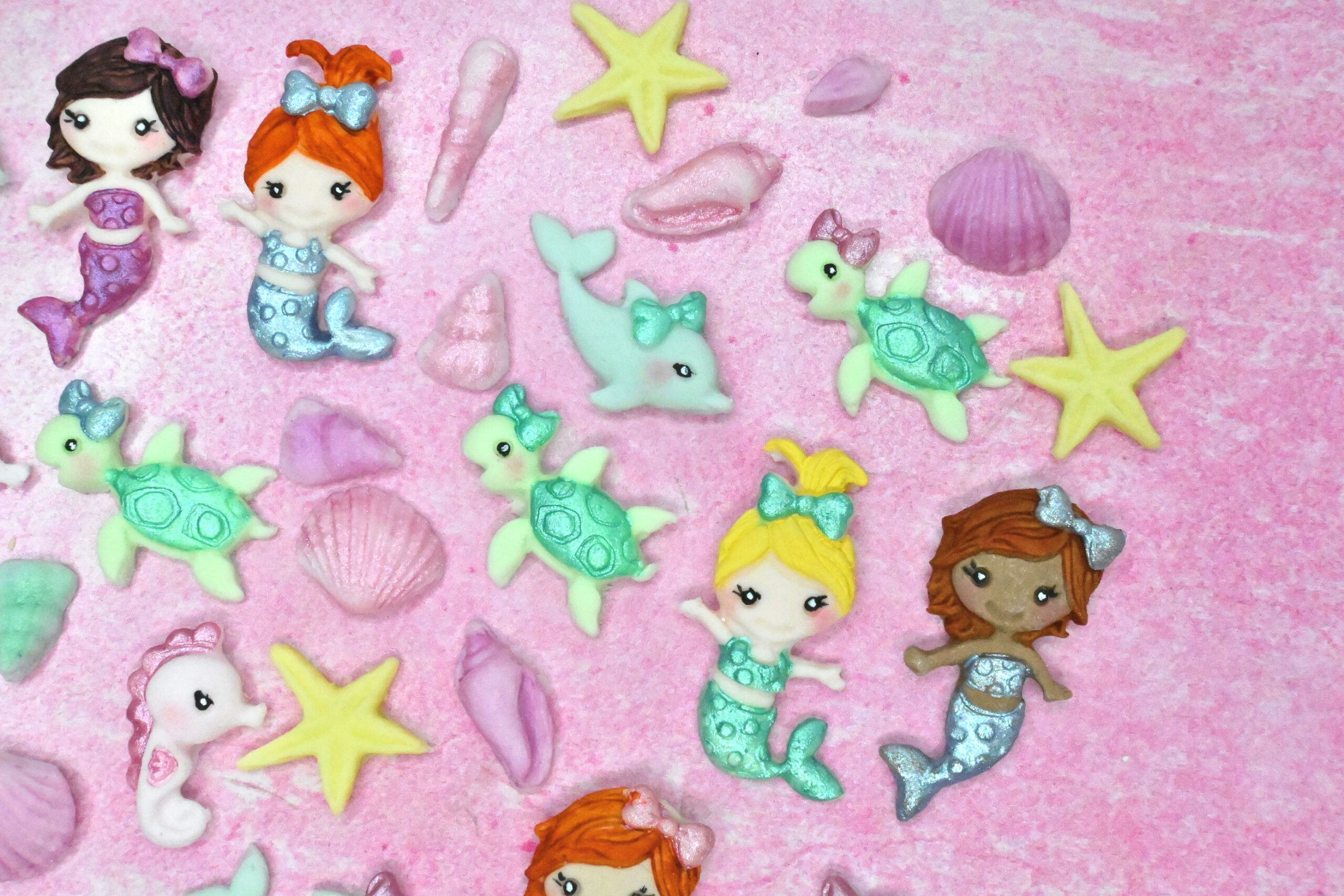 Giving you two mermaids, dolphin, seahorse, turtle, starfish and five shells.