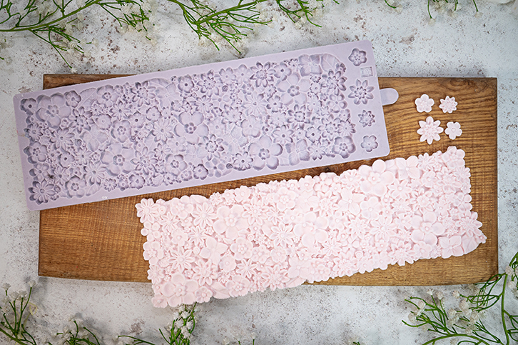 Four individual flowers are also included on the mould to help you disguise any joins easily or to add more depth to your cake!